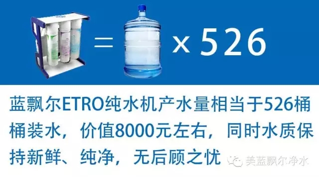 桶装水按7天更换一桶,每桶12-18元的成本,每年花费800~900元左右。只要2~3年就够一台净水器的钱了。而桶装水通常有保质期,过保后细菌开始大量繁殖易引起腹泻。同时,应水机也需要定期清洗。否则,会大量滋生细菌和病毒,甚至红虫等。选择净水器您将随时饮用安全、健康、鲜活、优质的水来提高生活品质!无论煲汤煮饭或是泡茶做咖啡,都能健康又好味!而且还为您省去订水、搬水的麻烦。